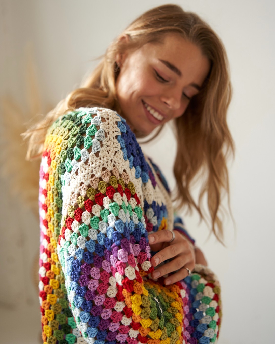Réalisez votre propre gilet cardigan au crochet en carrés granny grâce à ce patron numérique détaillé au format PDF. Ce modèle intemporel et coloré est idéal pour créer un vêtement bohème, tendance et entièrement fait main.