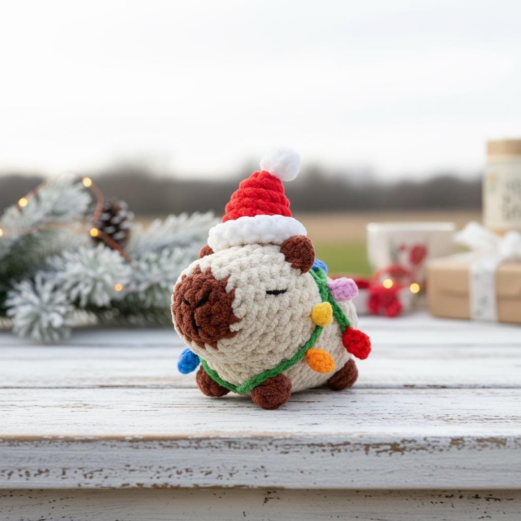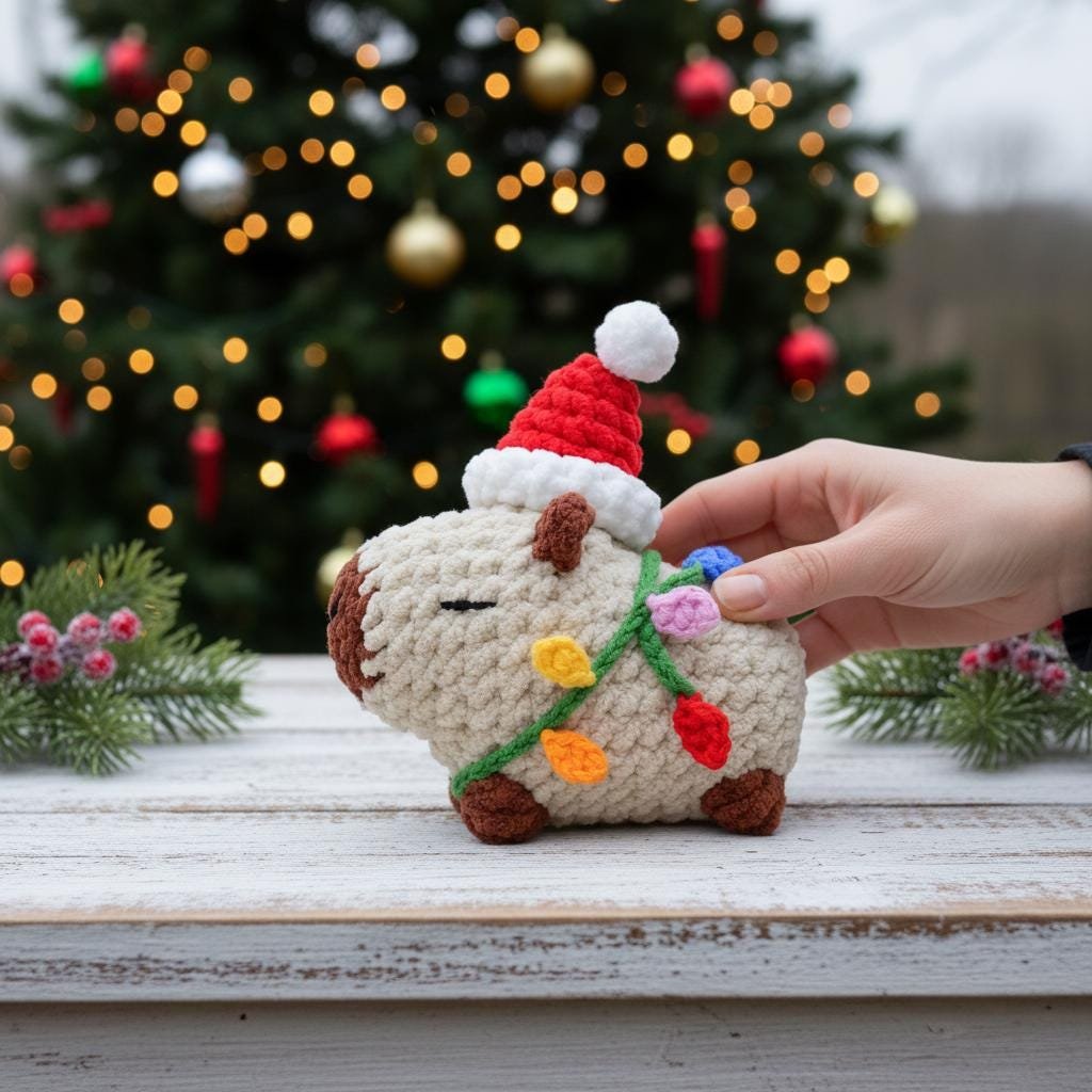 π Christmas Capybara Crochet Pattern β No-Sew Amigurumi | Christmas Ornament