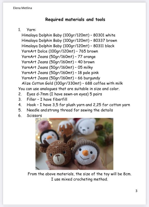 Double knit / light worsted / 8 ply yarn (white, brown, green, red)