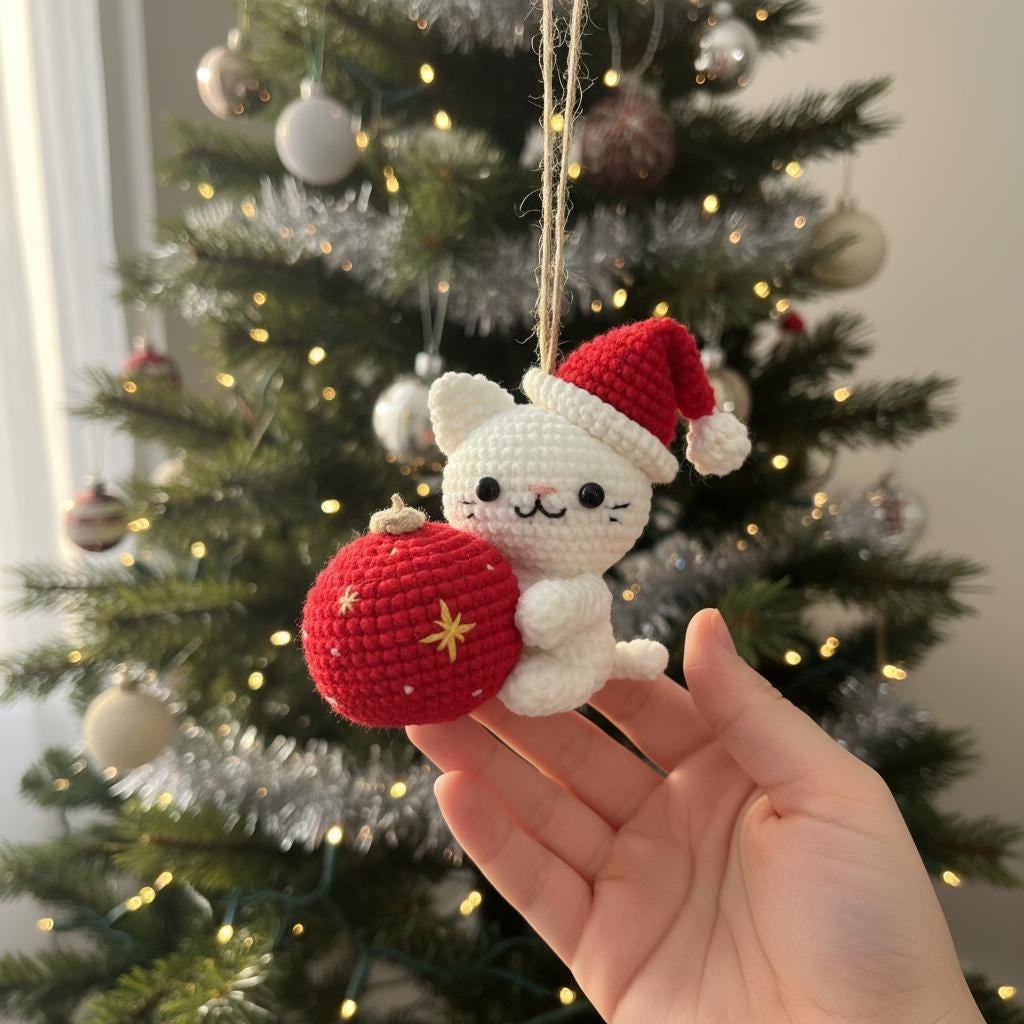 🎄 Christmas Cat and Ball Crochet Pattern