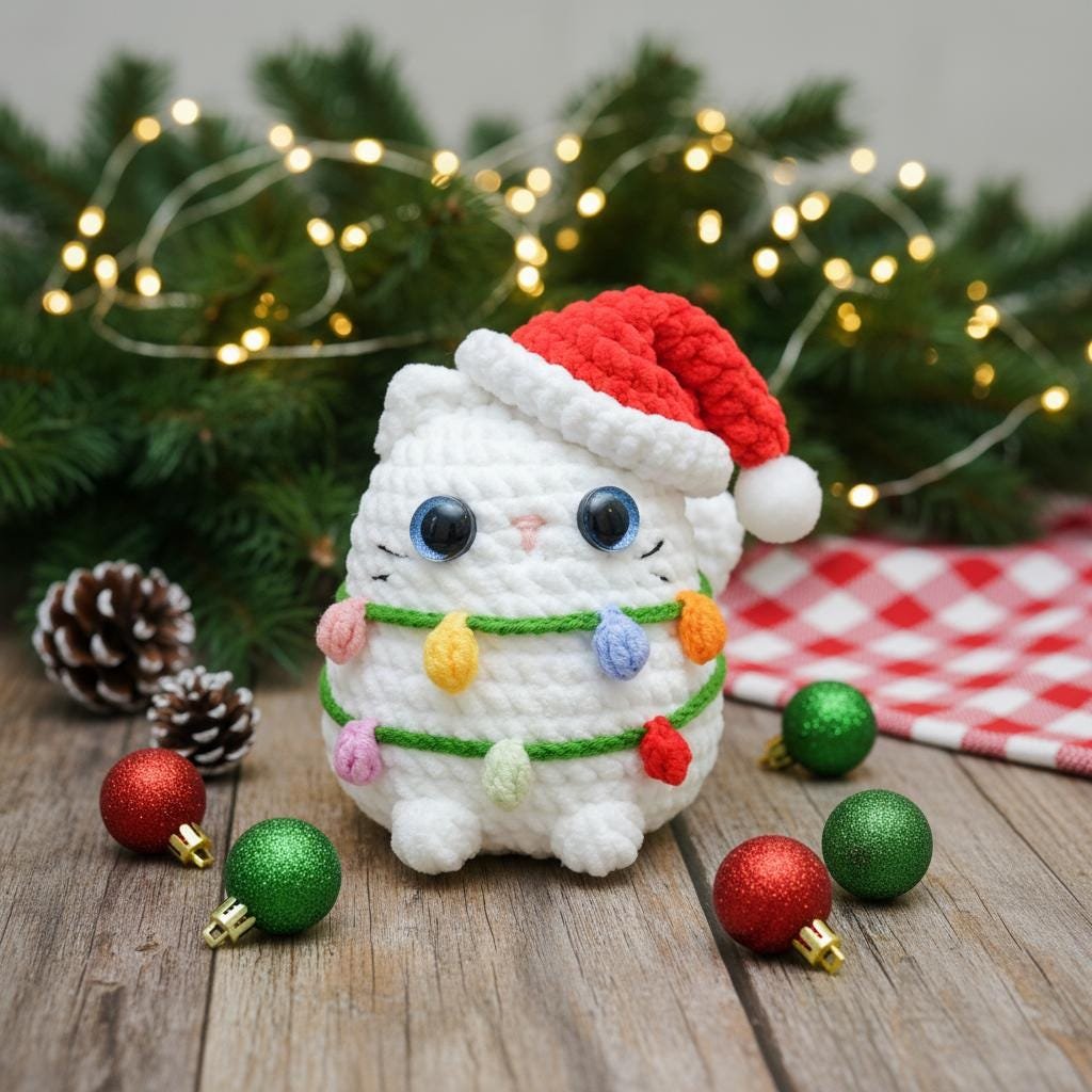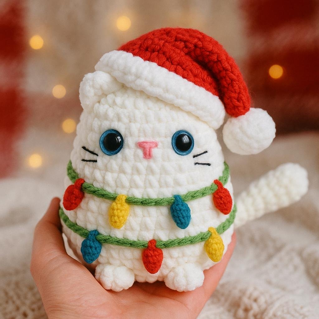 🎄 Christmas Loaf Cat Crochet Pattern – No-Sew Amigurumi