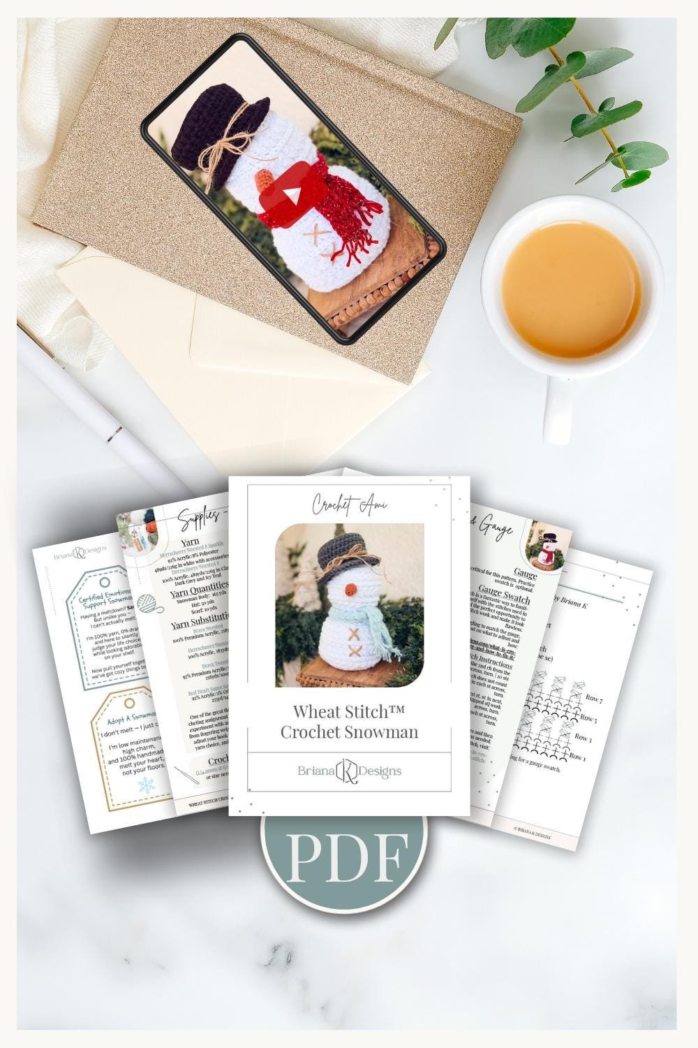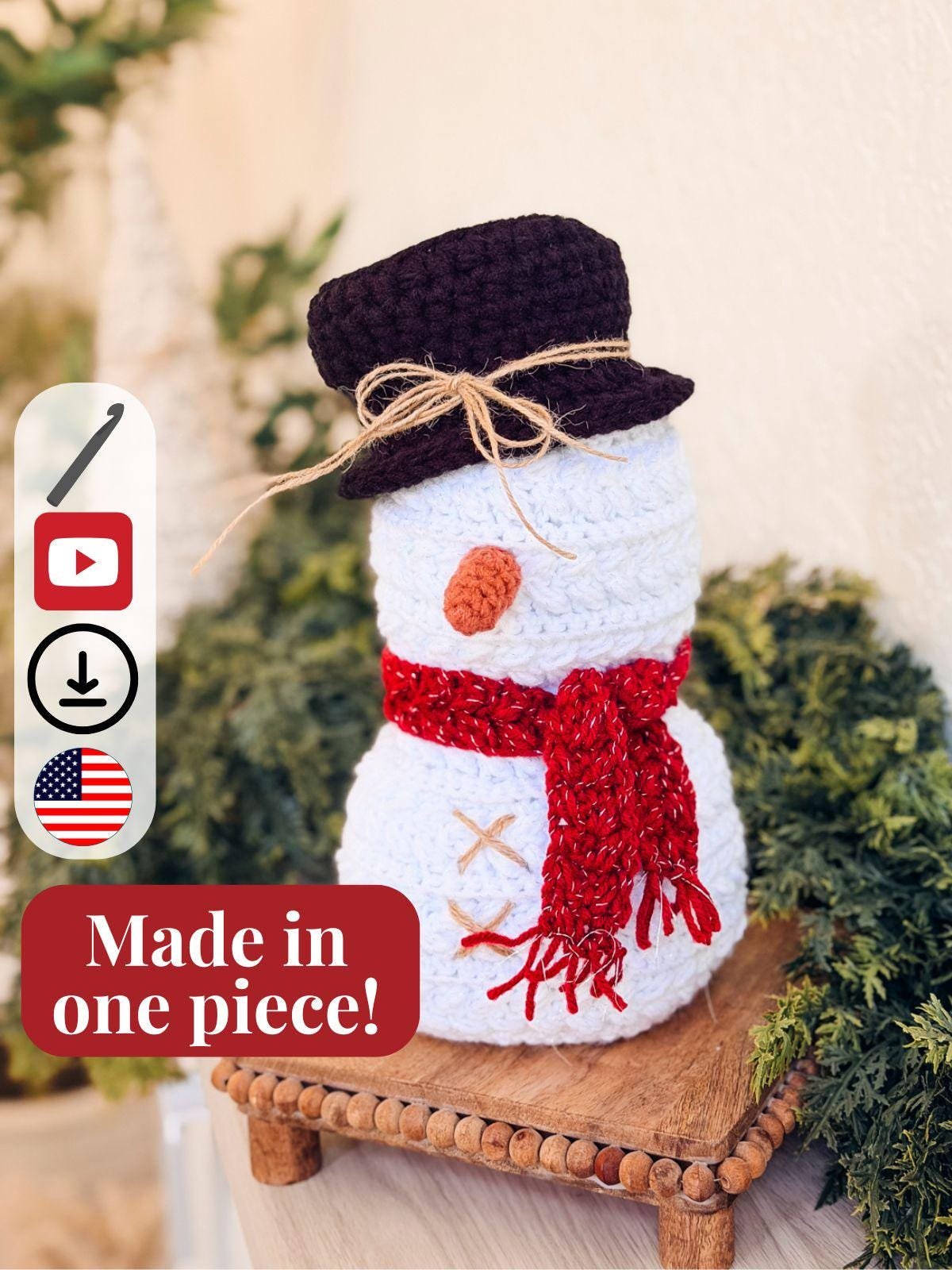 Snowman Crochet Pattern & Video – Beginner-Friendly Amigurumi PDF for Cozy Holiday Decor