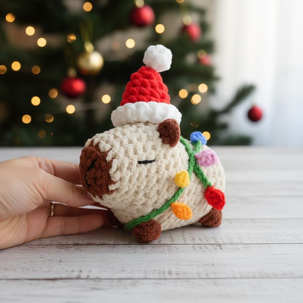 🎄 Christmas Capybara Crochet Pattern – No-Sew Amigurumi | Christmas Ornament