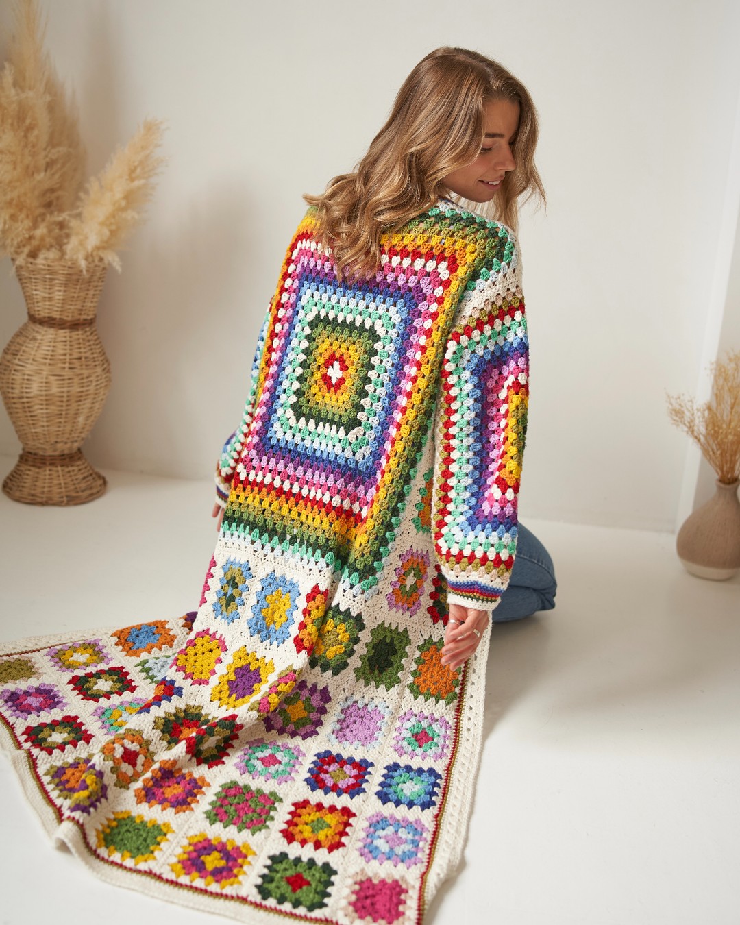 🌸 Patron Cardigan en Carrés Granny – Crochet PDF