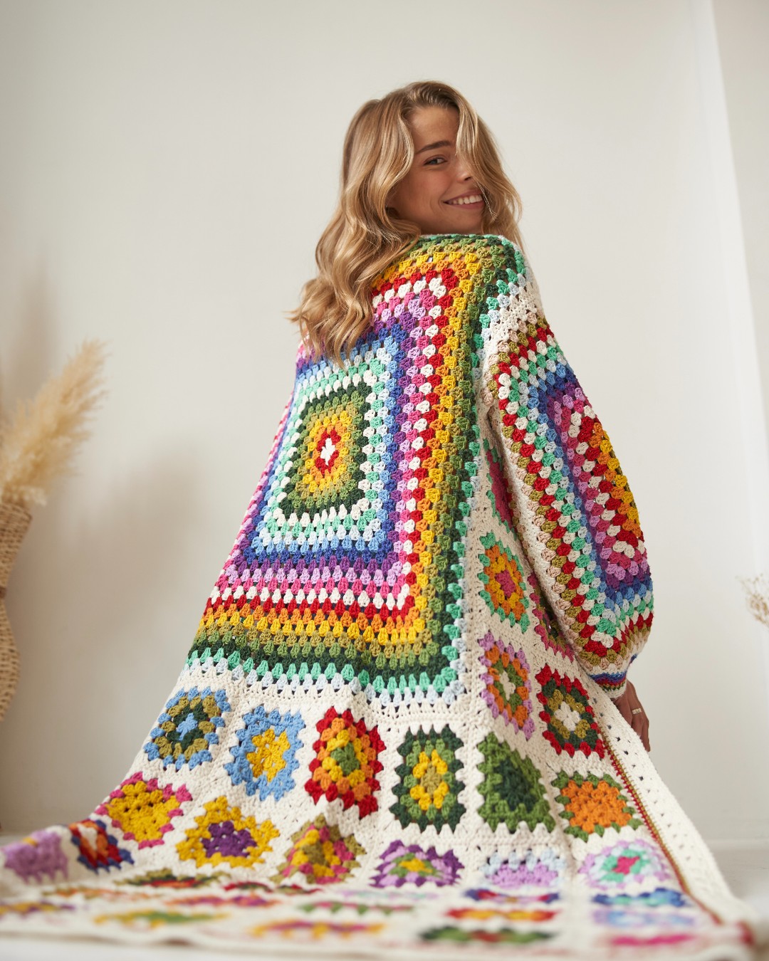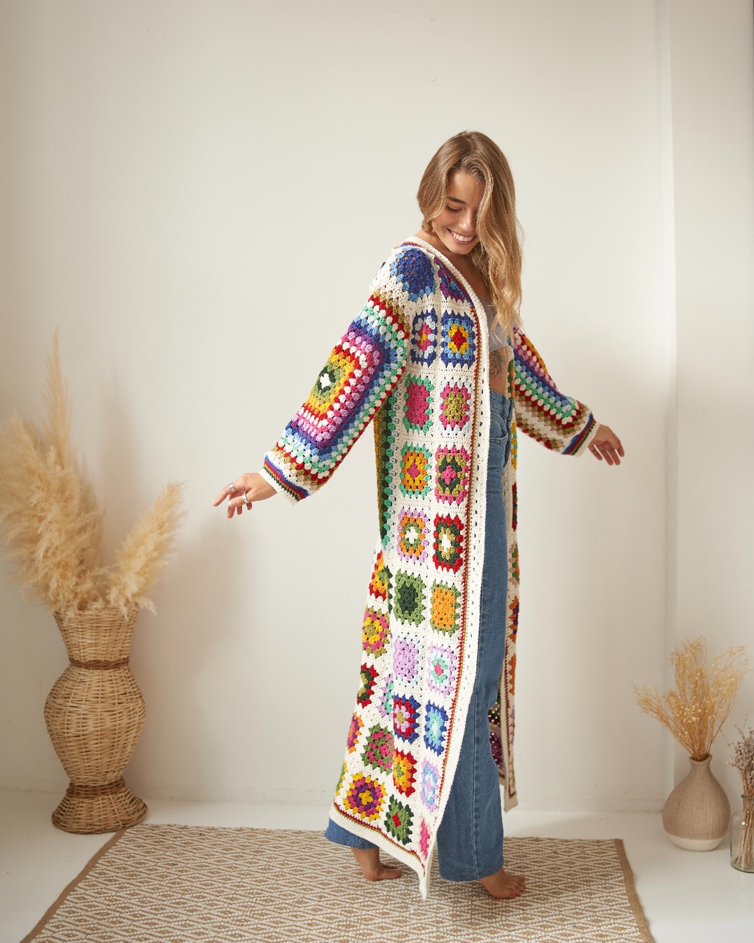 Réalisez votre propre gilet cardigan au crochet en carrés granny grâce à ce patron numérique détaillé au format PDF. Ce modèle intemporel et coloré est idéal pour créer un vêtement bohème, tendance et entièrement fait main.